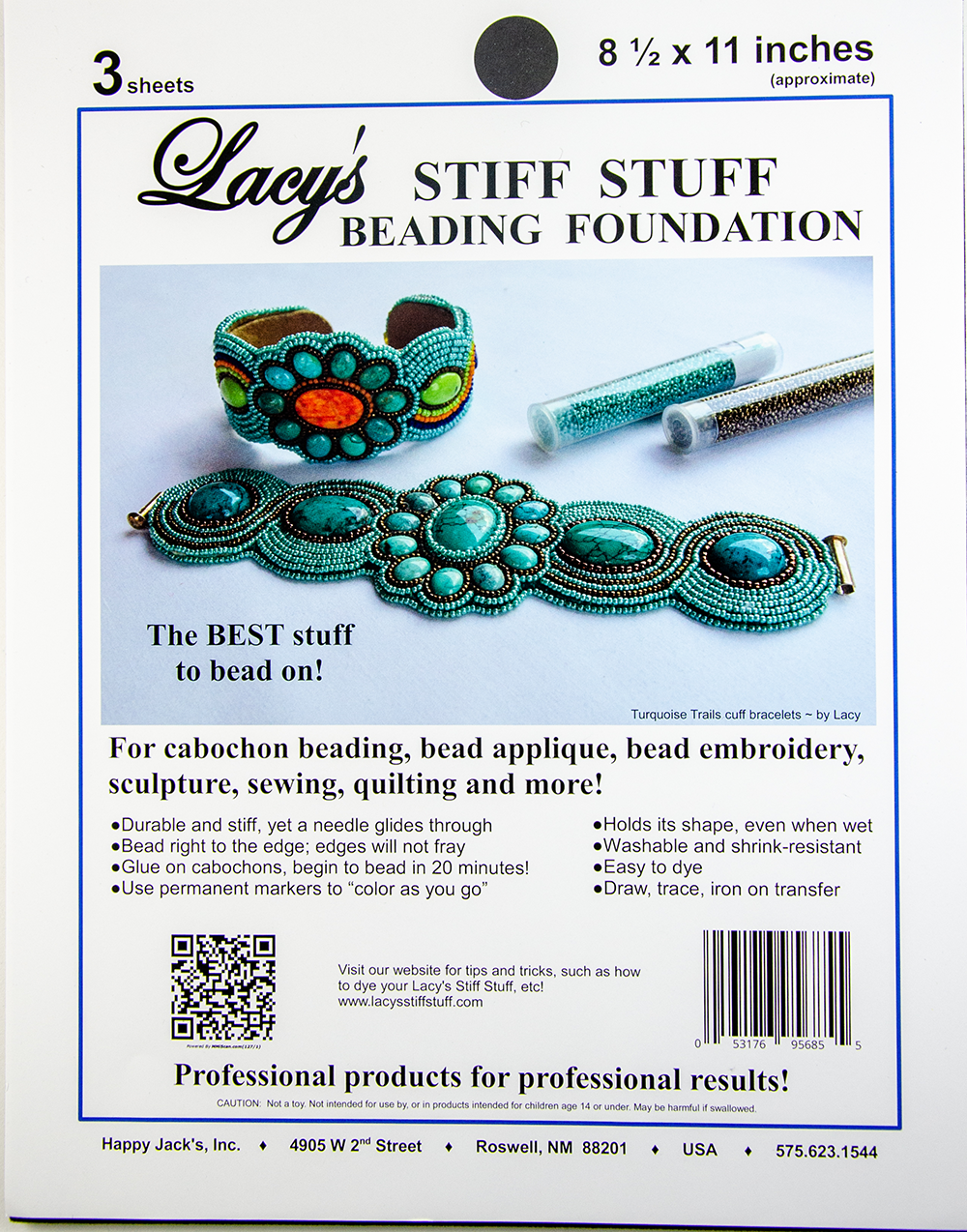 Lacy’s Stiff Stuff is a beading foundation that is durable, stiff but flexible, washable and shrink resistant. You can bead right up tp the edges without a problem, trace any pattern, or draw your own design. Moreover, you can dye it to match your beading project or color with a permanent marker.