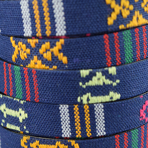 Multi Color Flat Cotton Cord with a Leather Backing, 14×1.8mm, Pattern no. 2