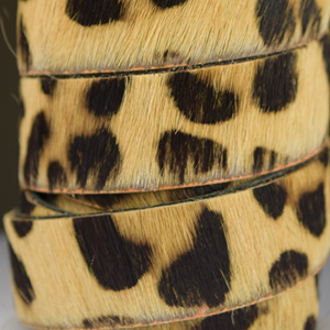 Licorice Flat Leather with Fur – Leopard Skin Effect, 20x2mm