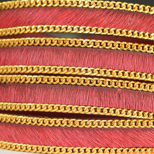 100% Natural leather chord with red fur. It has been finished with chain on the sides to add something special when creating those jewellery designs. This has become very popular with jewellery designers.