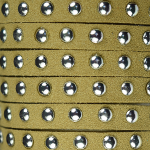 Ultra Suede Leather Cord, 7×1.5mm, with 6mm Silver Metal Studs – Beige