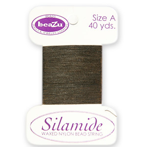 This Dark Brown Silamide is a 2 ply pre-waxed nylon thread made up of twisted filaments. The construction makes it exceptionally resilient, as well as colourfast. This Size A thread is very similar to Nymo Size D, or about 0.008in (0.20mm) in thickness. Silamide is remarkably versatile can be used for a number of projects, including: knotting, weaving, loom work, threading, pearl, crystal and gemstone stringing, braiding, and even on clothing!