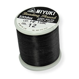 Miyuki nylon twisted beading thread has a strong slick coating and does not need waxing. The perfect thread that is strong and fine for delica beading and for projects that require the thread to pass through the hole multiple times.