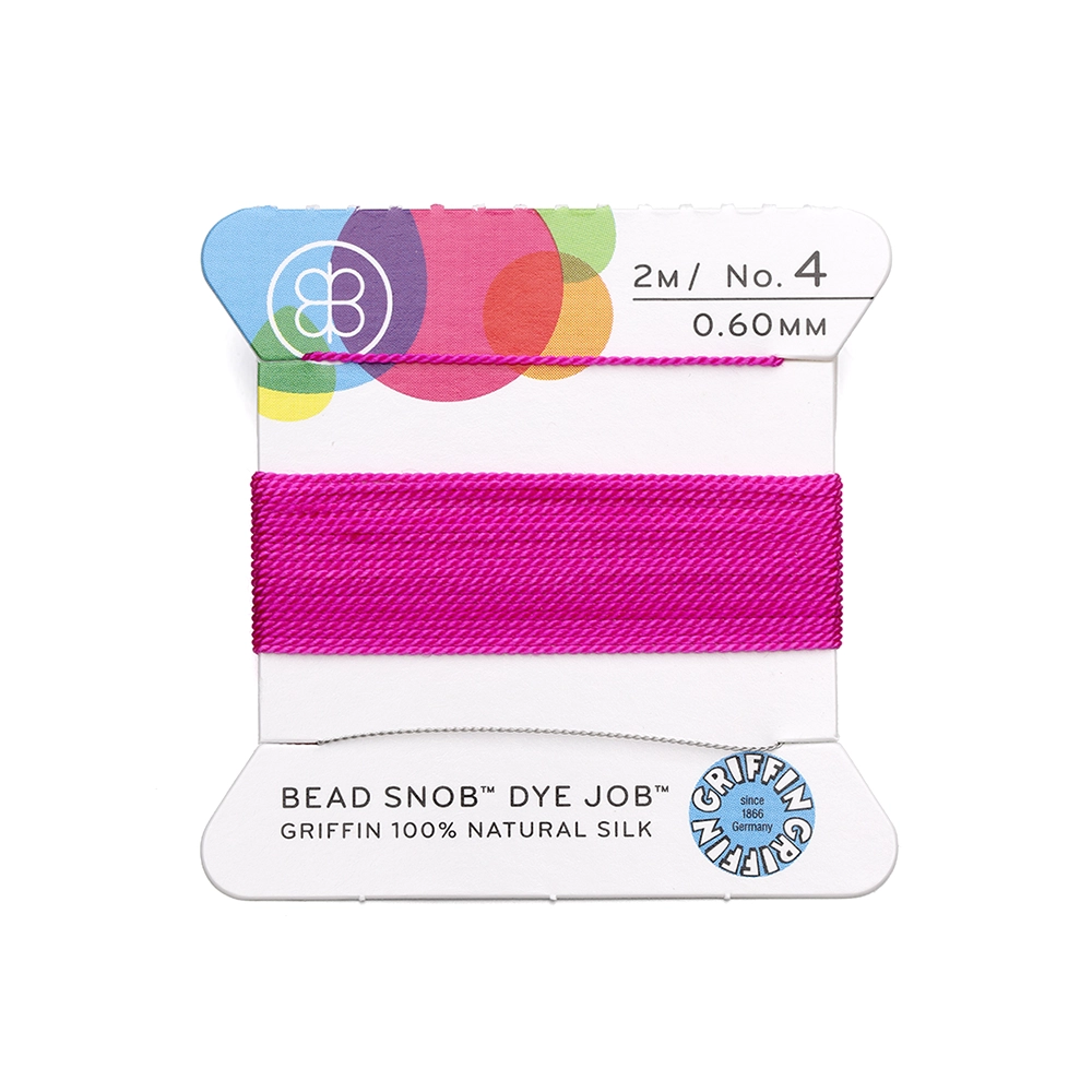 Griffin Silk Thread Size 4 Hand Dyed Neon Pink 2m/card