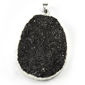 Pendant, Druzy Agate Natural, Black Diamond color with Sterling Silver – approx. 35x30mm