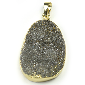 Pendant, Druzy Agate Natural, Black Diamond color with Sterling Silver Gold Finish – approx. 35x25mm