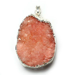 Pendant, Druzy Agate Natural Dyed, Pink color finish with Sterling Silver – approx. 36x31mm