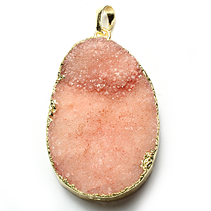 Pendant, Druzy Agate Natural Dyed, Pink color finish with Sterling Silver Gold Finish – approx. 35x30mm