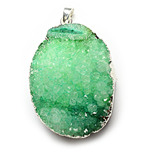 Pendant, Druzy Agate Natural Dyed, Green color finish with Sterling Silver – approx 42x32mm
