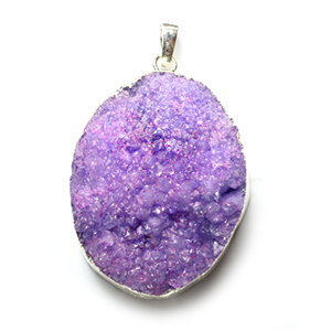 Pendant, Druzy Agate Natural Dyed, Amethyst color finish with Sterling Silver – approx. 37x29mm