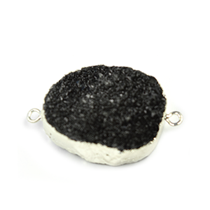 Link, Druzy Agate Natural Dyed, Black Diamond color with 2 Loops finish with Sterling Silver – approx.25x20mm