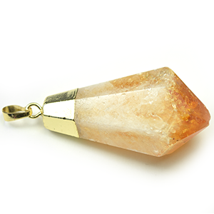 Pendant, Citrine Gemstone, Hand Cut, 24x49mm with Gold Plated Top and Bail