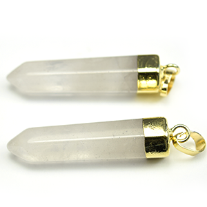 Pendant Quartz Crystal, Hand Cut, 40x10mm with Gold Plated Top