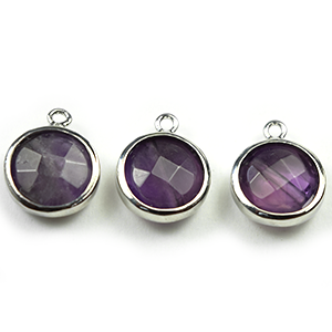 Pendant, Amethyst Gemstone, 10mm Round with Silver plated bezel