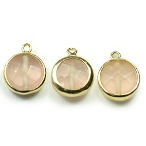 Round Gemstone Pendant in Rose Quartz, 10mm, plated in Gold