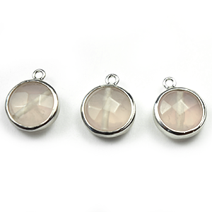 Round Gemstone Pendant in Rose Quartz, 10mm, plated in Silver