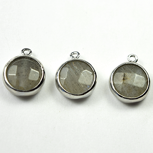 Round Gemstone Pendant in Labradorite, 10mm, plated in Silver