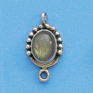 Bali Silver Pendant, 20x11mm with Labradorite Oval Gemstone