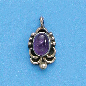 Bali Silver Pendant,17x9mm with Amethyst Oval Gemstone
