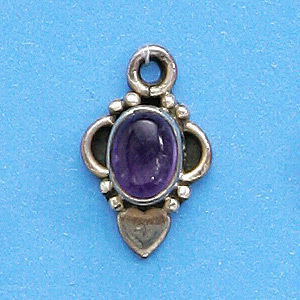 Bali Silver Pendant,12x18mm with Amethyst Oval Gemstone