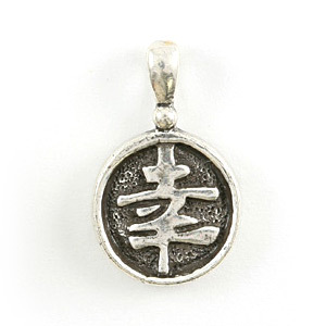 Pendant, Pewter 13mm Round Chinese Charm in Antique Pewter – Luck 2