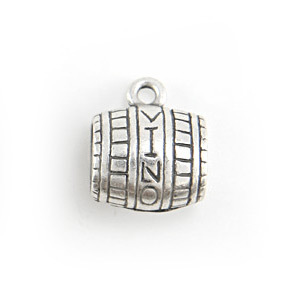 Wine Barrel Pewter Charm with a super design replica of a barrel. A great looking charm for everyone. One-sided design.