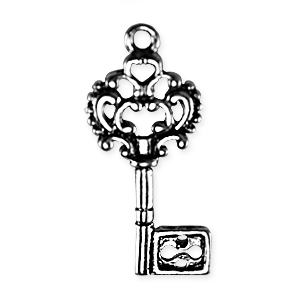 Fancy key in an antique silver finish. Great to use on a bracelet, necklace or as a pair of earrings or even just on a keychain. This pewter is lead free.