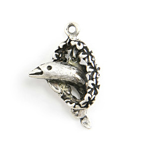 Charm, Pewter 15x14mm Dolphin in Antique Pewter Finish