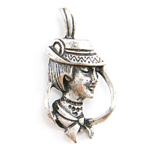 Skip to contentHigh Class Lady Pendant in Pewter with large hole to fit various cords like leather, waxed cotton cord or satin cord.