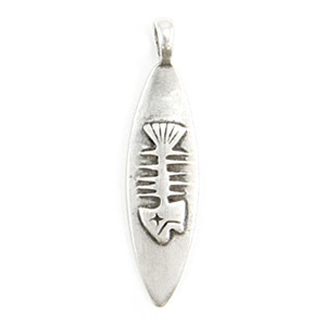 Fishbone surboard in an antique silver finish. Great to use on a bracelet, necklace or as a pair of earrings or even just on a keychain. This pewter is lead free.
