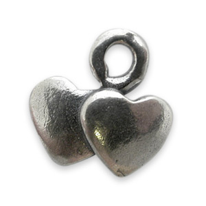 Charm, JBB Pewter 7.8x8mm 2 Hearts in Antique Silver Finish