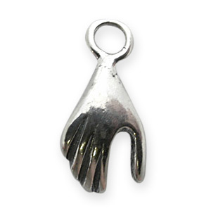 Hand pendant in an antique silver finish. Great to use on a bracelet, necklace or as a pair of earrings or even just on a keychain. This pewter is lead free.