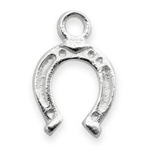 Horseshoe pendant in an antique silver finish. Great to use on a bracelet, necklace or as a pair of earrings or even just on a keychain. This pewter is lead free.