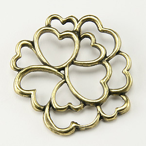 Pendant, B&B Benbassat Pewter 35mm Circular with Multiple Heart – Antique Brass
