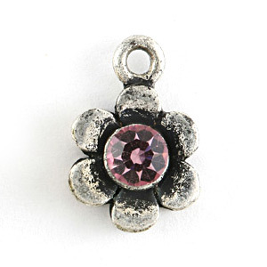 Charm in Pewter 8.5mm Flower Shape with Preciosa Light Amethyst crystal