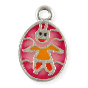 Charm, Pewter Drop 17x11mm Oval Happy Kid – Enamel Pink color