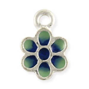 Charm, Pewter Drop 8mm in Flower Design with Enamel Finish – Blue