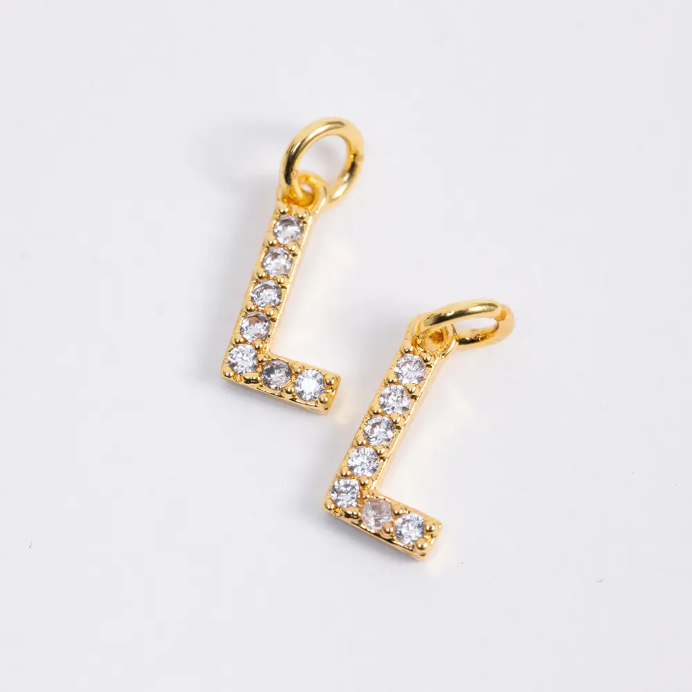 Brass Cubic zirconia Crystal Letter L 18K Gold Plating