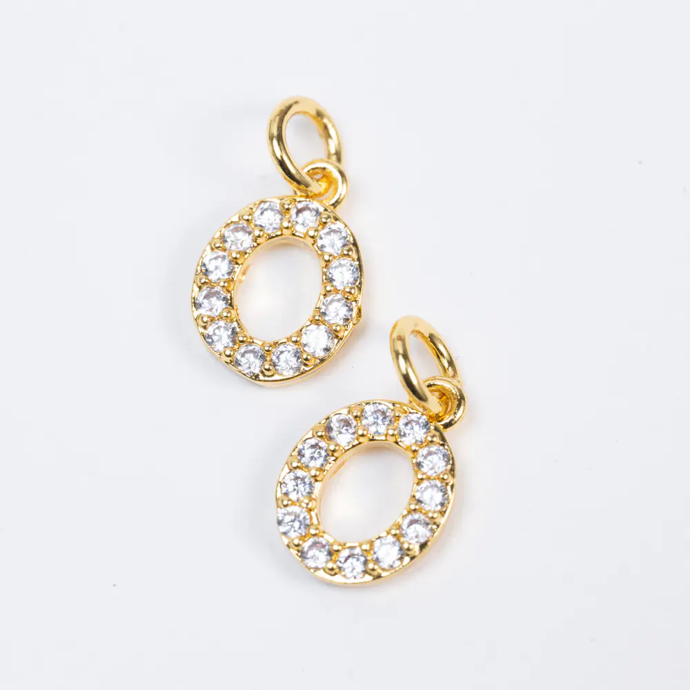 Brass Cubic zirconia Crystal Letter O 18K Gold Plating