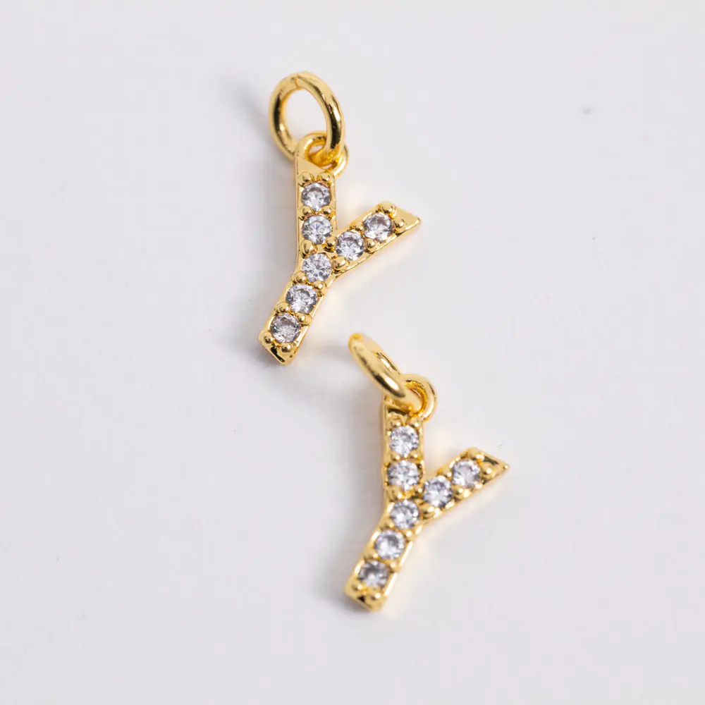 Brass Cubic zirconia Crystal Letter Y 18K Gold Plating
