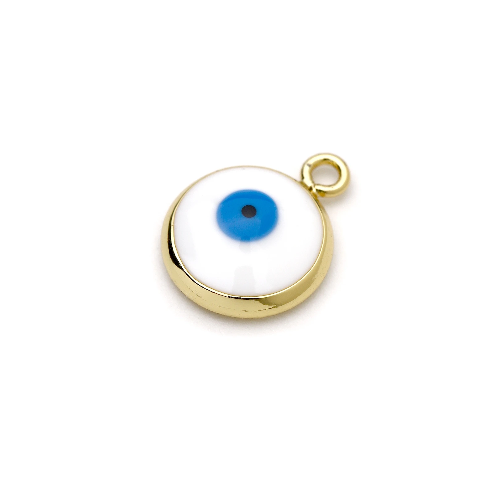 Evil Eye 14K Gold Plated 10mm Pendant Charm – White