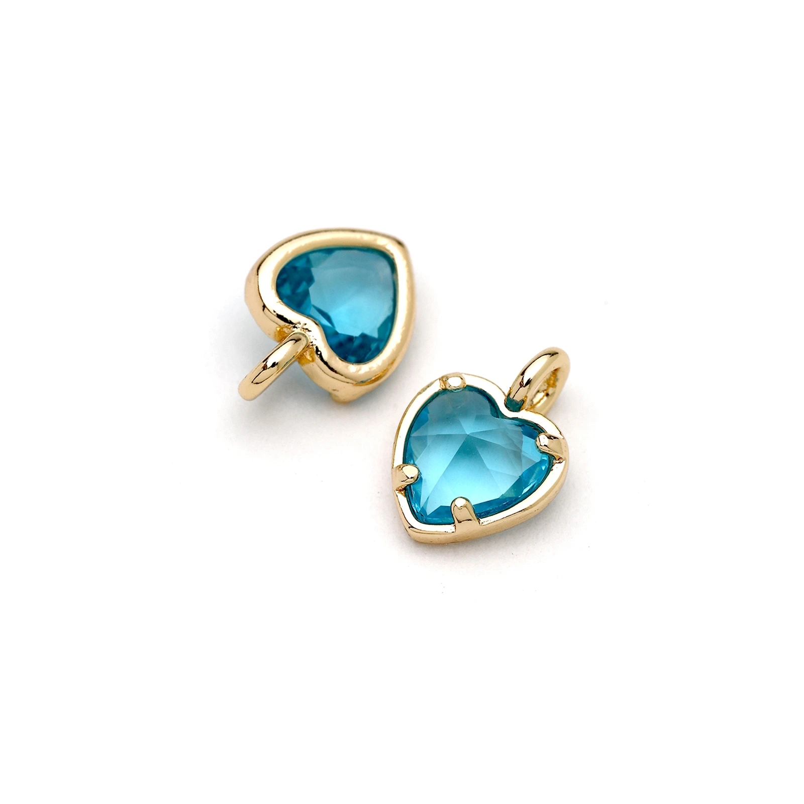 14K Gold Plated Heart Birthstone(Cubic Ziconia) Charm – March ( Loop on the side way)