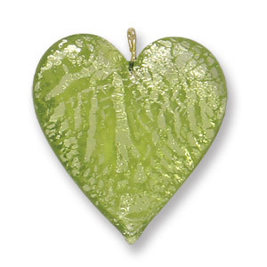 Pendant, Lampwork Glass with Silverfoil with Wire Loop, 28mm Heart – Chartreuse. Made in Japan (Hole Size 1.8mm)