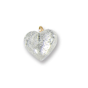 Pendant, Lampwork Glass with Silverfoil with Wire Loop, 14mm Heart – Crystal. Made in Japan (Hole Size 1.8mm)