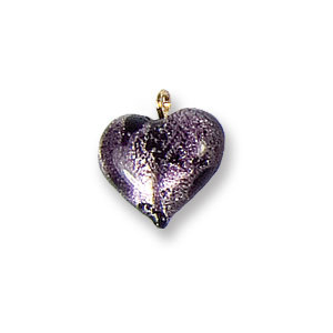 Pendant, lampwork, 14mm heart, silverfoil – Plum
