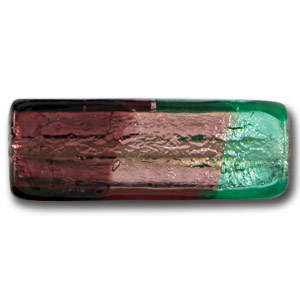 Pendant, Lampwork Glass with Silverfoil 48x18mm Rectangle in 3 gorgeous colors – Teal/Lt.Amethyst/Dk.Amethyst. Made in Japan (Hole Size 2.5mm)