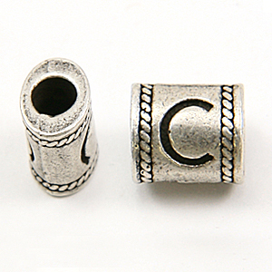 Bead, Pewter 10×6.7mm Oval Tube in Antique Pewter, Alphabet Letter C