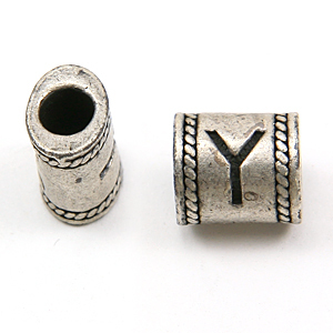 Bead, Pewter 10×6.7mm Oval Tube in Antique Pewter, Alphabet Letter Y