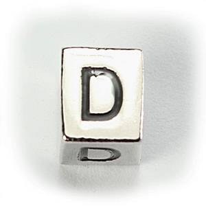 Beads, Alphabet Beads in Metal 5.5×7.5mm (width x side), holesize: 3mm – Letter D
