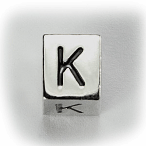 Beads, Alphabet Beads in Metal 5.5×7.5mm (width x side), holesize: 3mm – Letter K